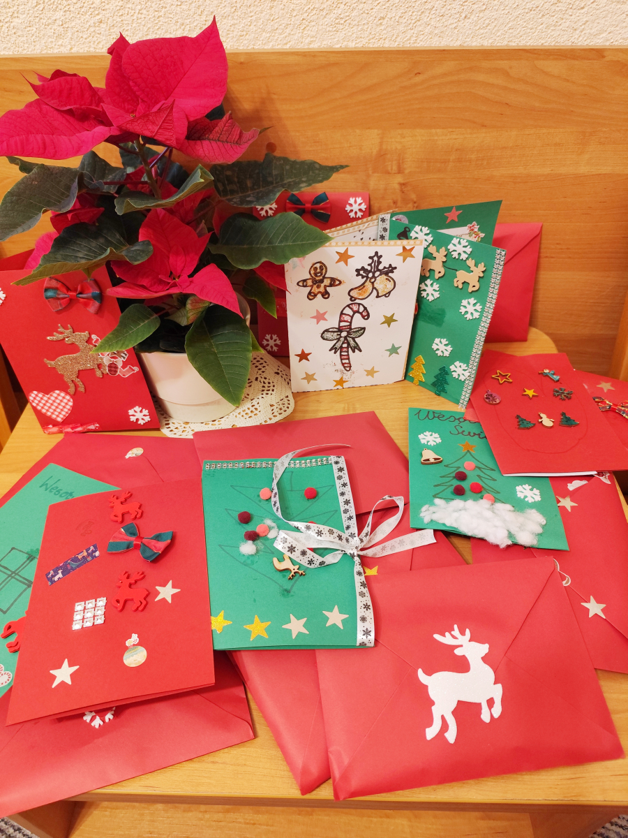 W dniu 17.12.2025 r. otrzymaliśmy przesyłkę pełną własnoręcznie wykonanych kart Bożonarodzeniowych z życzeniami od Dzieci oraz czekolady od Firmy Mondelēz International . Urokliwe i wzruszajace karty zostaną przekazane naszym Mieszkańcom podczas uroczystego spotkania Wigilijnego. Jesteśmy wdzięczni za pomysł, pamięć o naszych Seniorach i wkład pracy jakie Dzieci włożyły w wykonanie tych pięknych kart. Dziękujemy!