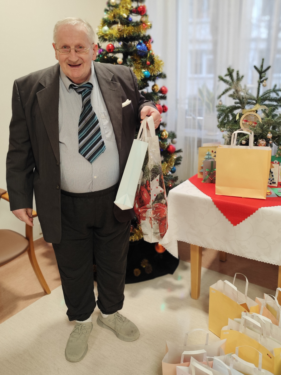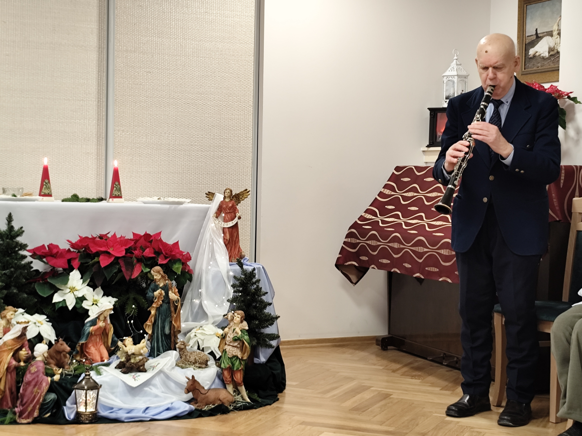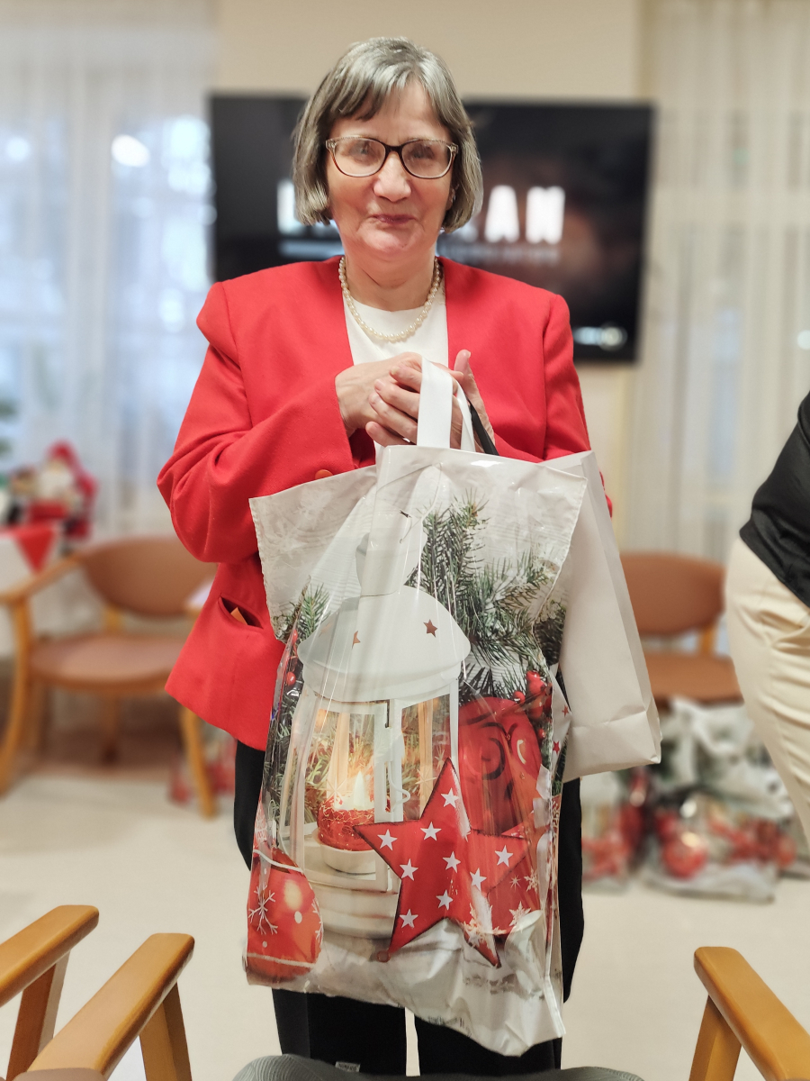 Tegoroczne spotkanie Wigilijne z Mieszkańcami, które odbyło się 22.12.2025 r. było niezwykłe. W doniosłej, rodzinnej, spokojnej atmosferze mieliśmy szansę obejrzeć spektakl słowno - muzyczny. Mieszkańcy i Pracownicy Domu przeczytali krótkie utwory literackie, jak również zaprezentowali krótki koncert kolęd granych na klarnecie. Po uroczystości, zgromadzeni Mieszkańcy zostali zaproszeni na uroczysty obiad. Domowe, lepione uszka z czerwonym barszczem, wyborna ryba, kapusta i ciasta były pyszne. Nasi kucharze jak zawsze stanęli na wysokości zadania. Dodatkowo Wolontariat Pracowniczy Wyborowa Pernod Ricard, z którym mieliśmy okazję współpracować w tym roku, tuż przed Świętami Bożego Narodzenia sprawił nam miła niespodziankę. Wolontariusze przygotowali dla Mieszkańców Domu imienne karty z życzeniami oraz słodkie upominki. Spersonalizowane życzenia sprawiły wiele radości i uśmiechu. To niezwykle miły gest. Dziękujemy, że jesteście Państwo z nami. Wspoeracie nas i pamiętacie o naszych Mieszkańcach i wspieracie nas przez cały rok.