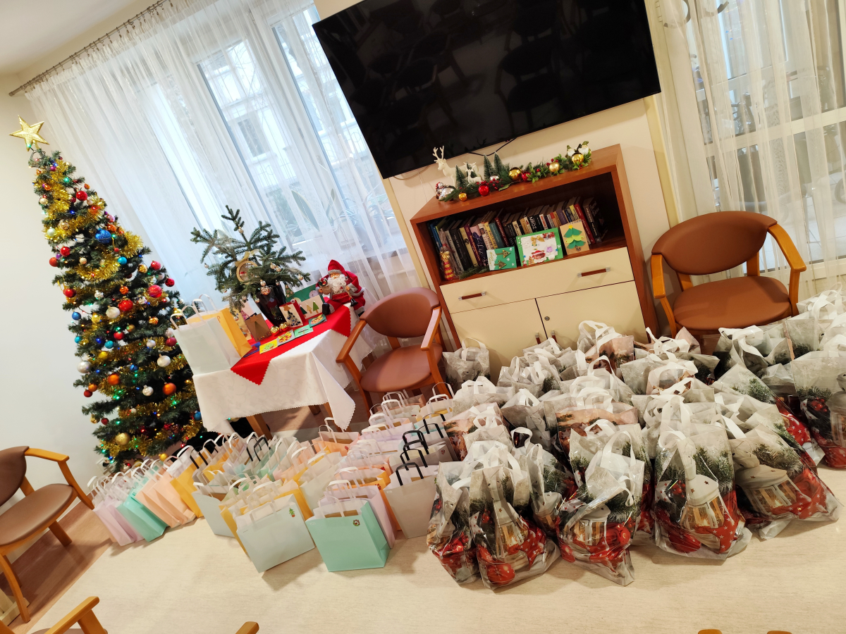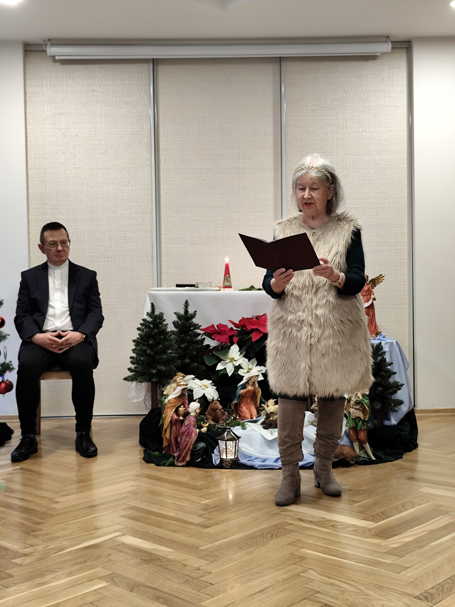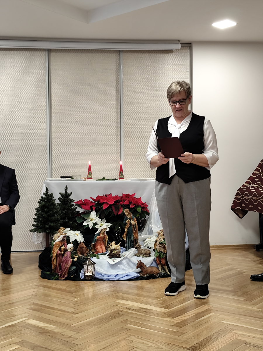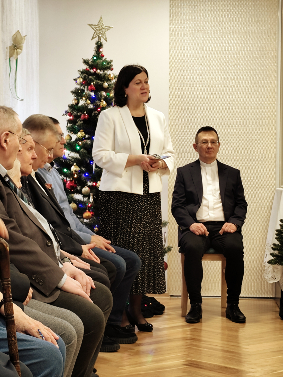 Tegoroczne spotkanie Wigilijne z Mieszkańcami, które odbyło się 22.12.2025 r. było niezwykłe. W doniosłej, rodzinnej, spokojnej atmosferze mieliśmy szansę obejrzeć spektakl słowno - muzyczny. Mieszkańcy i Pracownicy Domu przeczytali krótkie utwory literackie, jak również zaprezentowali krótki koncert kolęd granych na klarnecie. Po uroczystości, zgromadzeni Mieszkańcy zostali zaproszeni na uroczysty obiad. Domowe, lepione uszka z czerwonym barszczem, wyborna ryba, kapusta i ciasta były pyszne. Nasi kucharze jak zawsze stanęli na wysokości zadania. Dodatkowo Wolontariat Pracowniczy Wyborowa Pernod Ricard, z którym mieliśmy okazję współpracować w tym roku, tuż przed Świętami Bożego Narodzenia sprawił nam miła niespodziankę. Wolontariusze przygotowali dla Mieszkańców Domu imienne karty z życzeniami oraz słodkie upominki. Spersonalizowane życzenia sprawiły wiele radości i uśmiechu. To niezwykle miły gest. Dziękujemy, że jesteście Państwo z nami. Wspoeracie nas i pamiętacie o naszych Mieszkańcach i wspieracie nas przez cały rok.