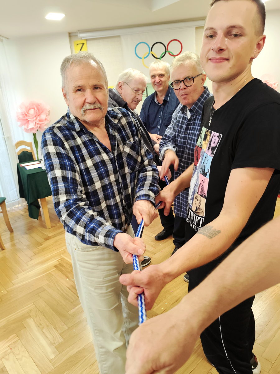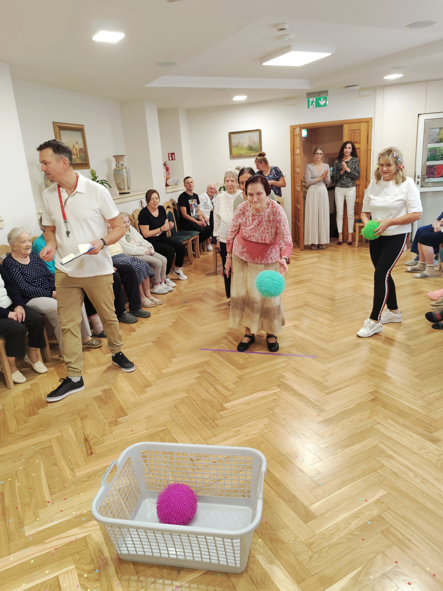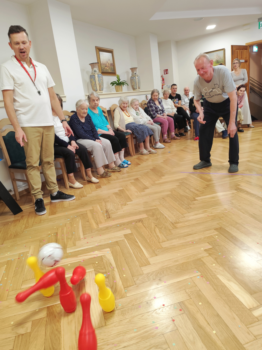 W dniach 14-20 września 2025 roku odbyła się 7 Warszawska Olimpiada Seniorów. Jest to wydarzenie sportowe dla osób po 60 roku życia, organizowane w ramach Warszawskich Dni Seniora. W naszym Domu również sportowych emocji nie zabrakło. Zarówno Goście z DPS Świętego Brata Alberta jak i Mieszkańcy naszego Domu, Personel z Panią Dyrektor na czele uczestniczyli w sportowej rywalizacji. Jak zawsze towarzyszył Mieszkańcom duch rywalizacji, dobry humor i całkiem niezła kondycja. Śmiechem i wspólną zabawą zostali obdarowani również Ci Mieszkańcy, którzy nie mogli brać czynnego udziału w rywalizacji. Wszyscy Uczestnicy Złotej Olimpiady zdobyli złote medale olimpijskie.