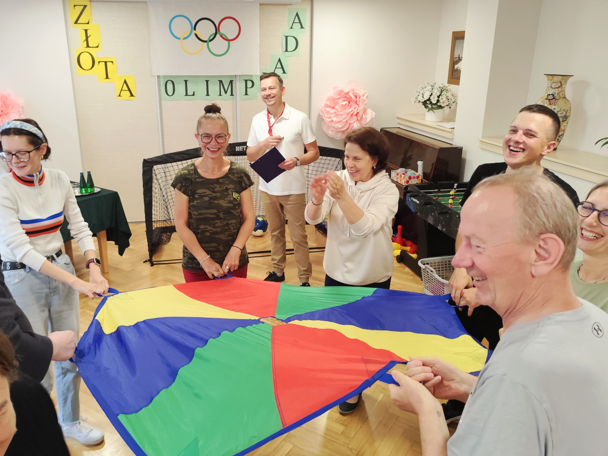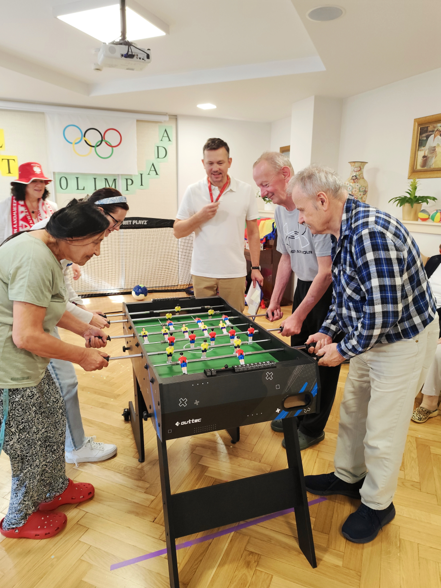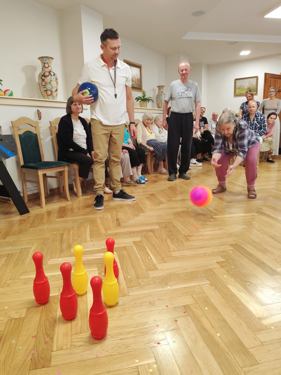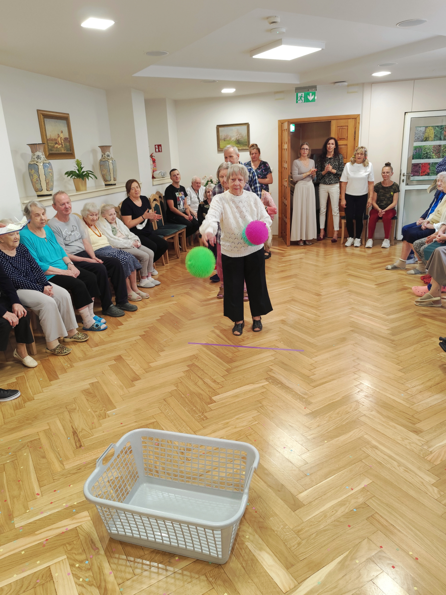 W dniach 14-20 września 2025 roku odbyła się 7 Warszawska Olimpiada Seniorów. Jest to wydarzenie sportowe dla osób po 60 roku życia, organizowane w ramach Warszawskich Dni Seniora. W naszym Domu również sportowych emocji nie zabrakło. Zarówno Goście z DPS Świętego Brata Alberta jak i Mieszkańcy naszego Domu, Personel z Panią Dyrektor na czele uczestniczyli w sportowej rywalizacji. Jak zawsze towarzyszył Mieszkańcom duch rywalizacji, dobry humor i całkiem niezła kondycja. Śmiechem i wspólną zabawą zostali obdarowani również Ci Mieszkańcy, którzy nie mogli brać czynnego udziału w rywalizacji. Wszyscy Uczestnicy Złotej Olimpiady zdobyli złote medale olimpijskie.